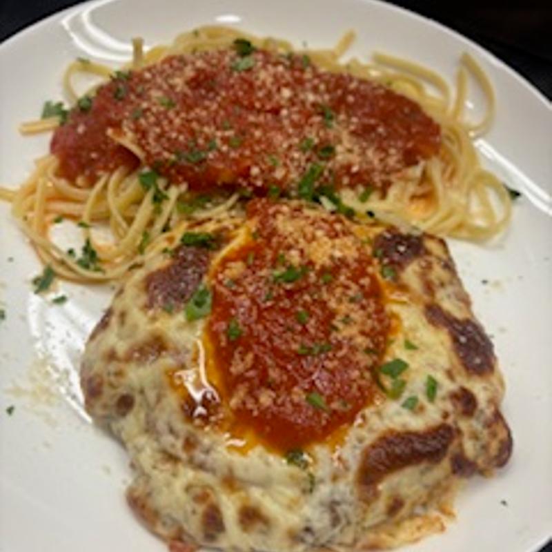 Italian breaded chicken cutlet topped with marinara and mozzarella cheese. Served with pasta.
